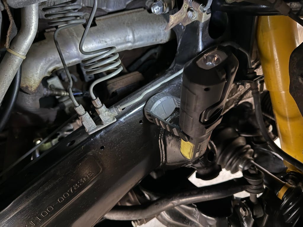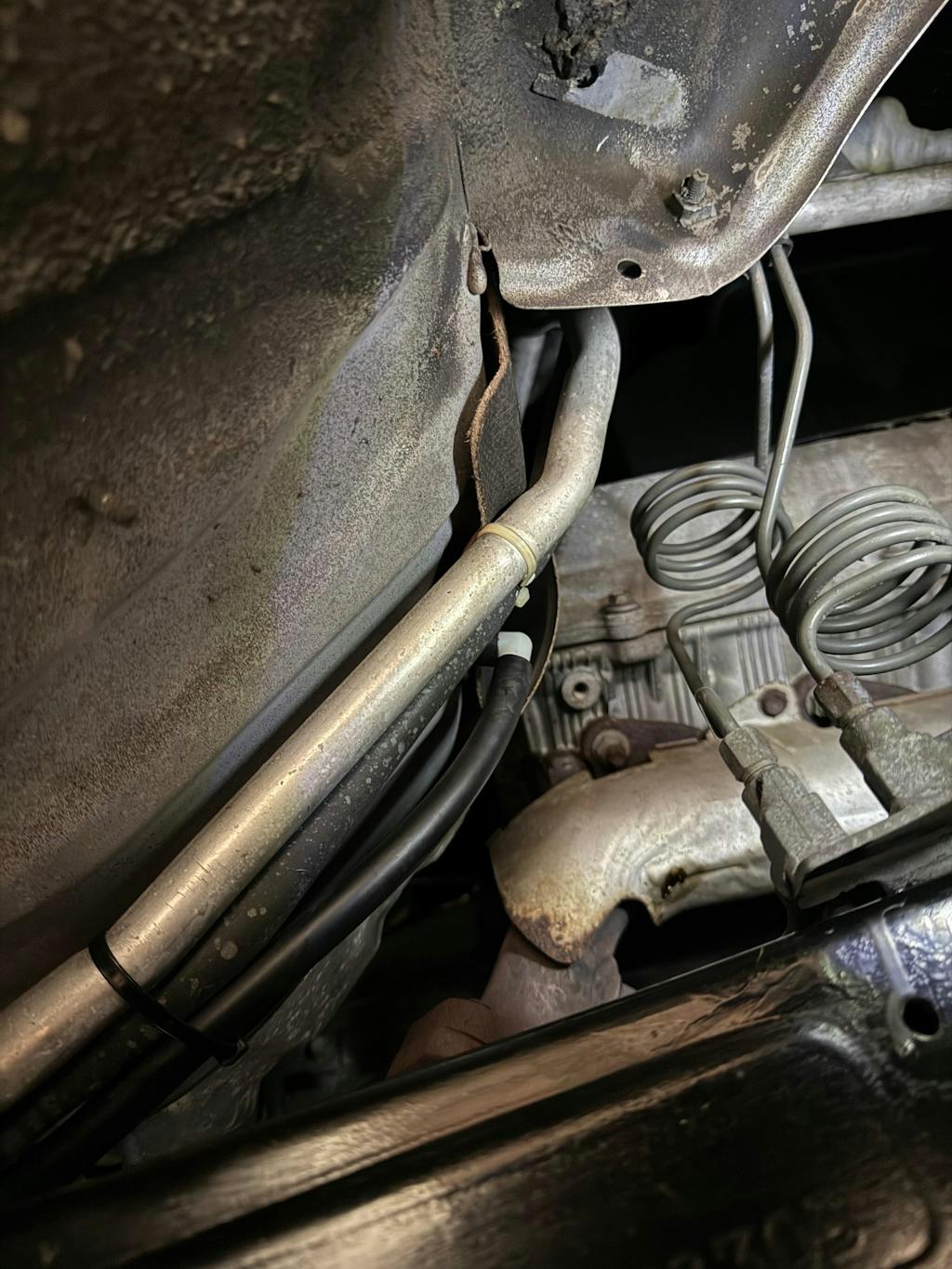 Over the years, condensation from the AC drain line accumulates on and around the passenger side sway bar bracket (IFS 100 series) as it drips down the frame of the vehicle. This kit mitigates the potential for rust build-up by routing the drain away from the firewall and frame.