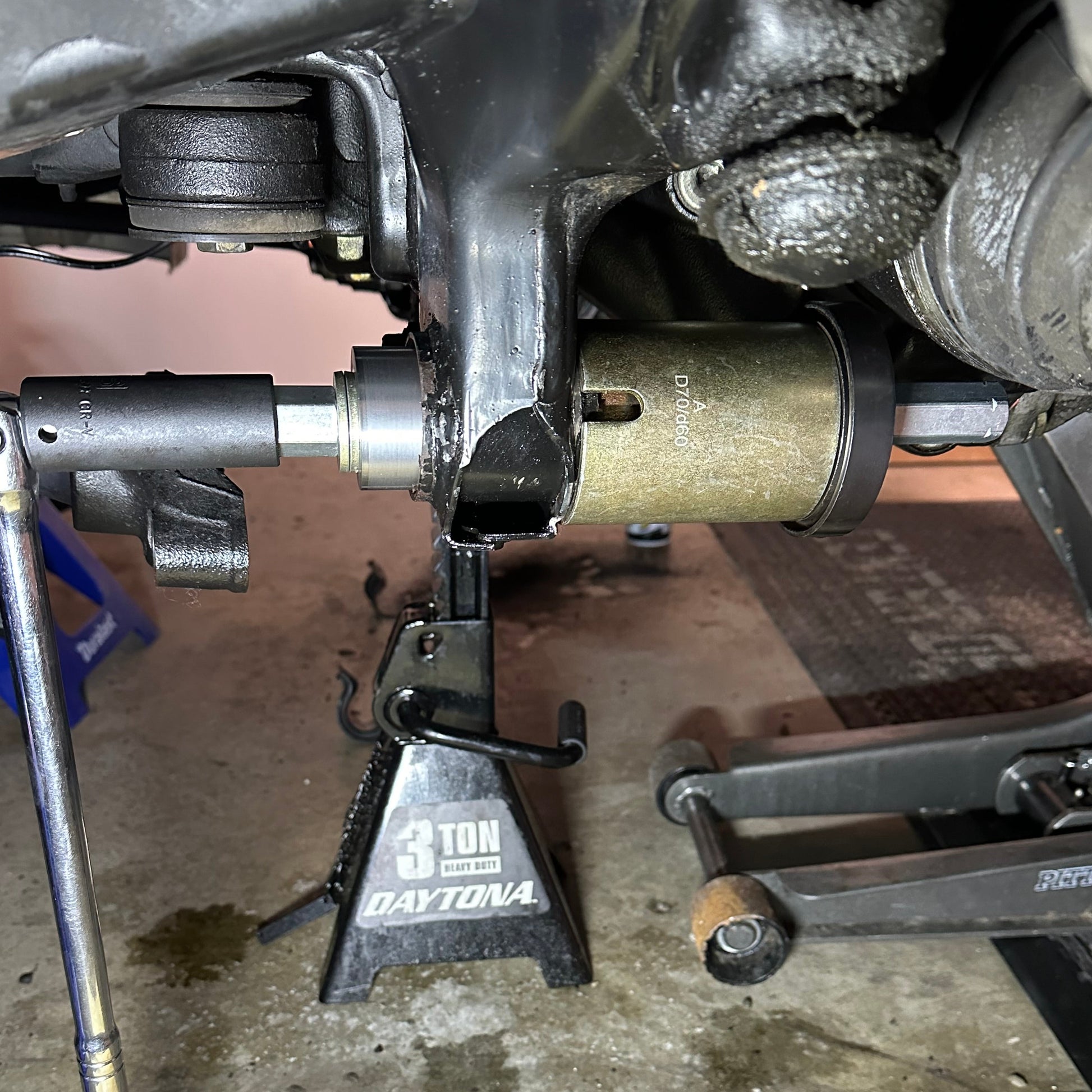 The lower control arm bushing No. 2 has always been a pain to burn, cut, or press out. The LCA bushing removal tool fits perfectly over the inner sleeve of the bushing ensuring a snug fit with perfect alignment.