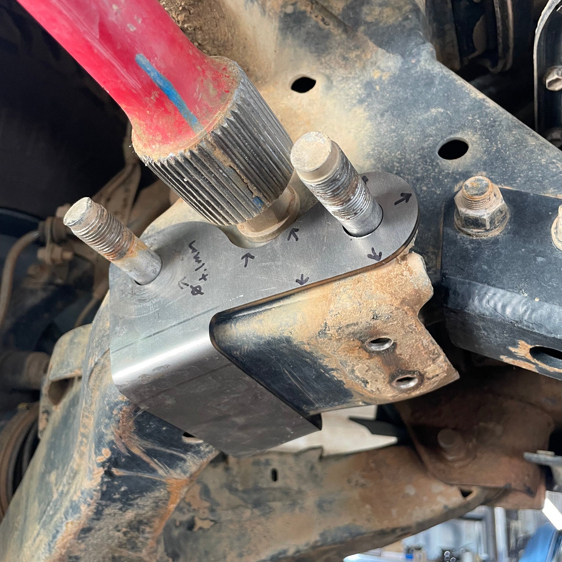 Vehicles with significant additional weight or added pre-load (such as re-indexing) are recommended to add lower control arm reinforcement brackets to prevent damage to the LCAs.