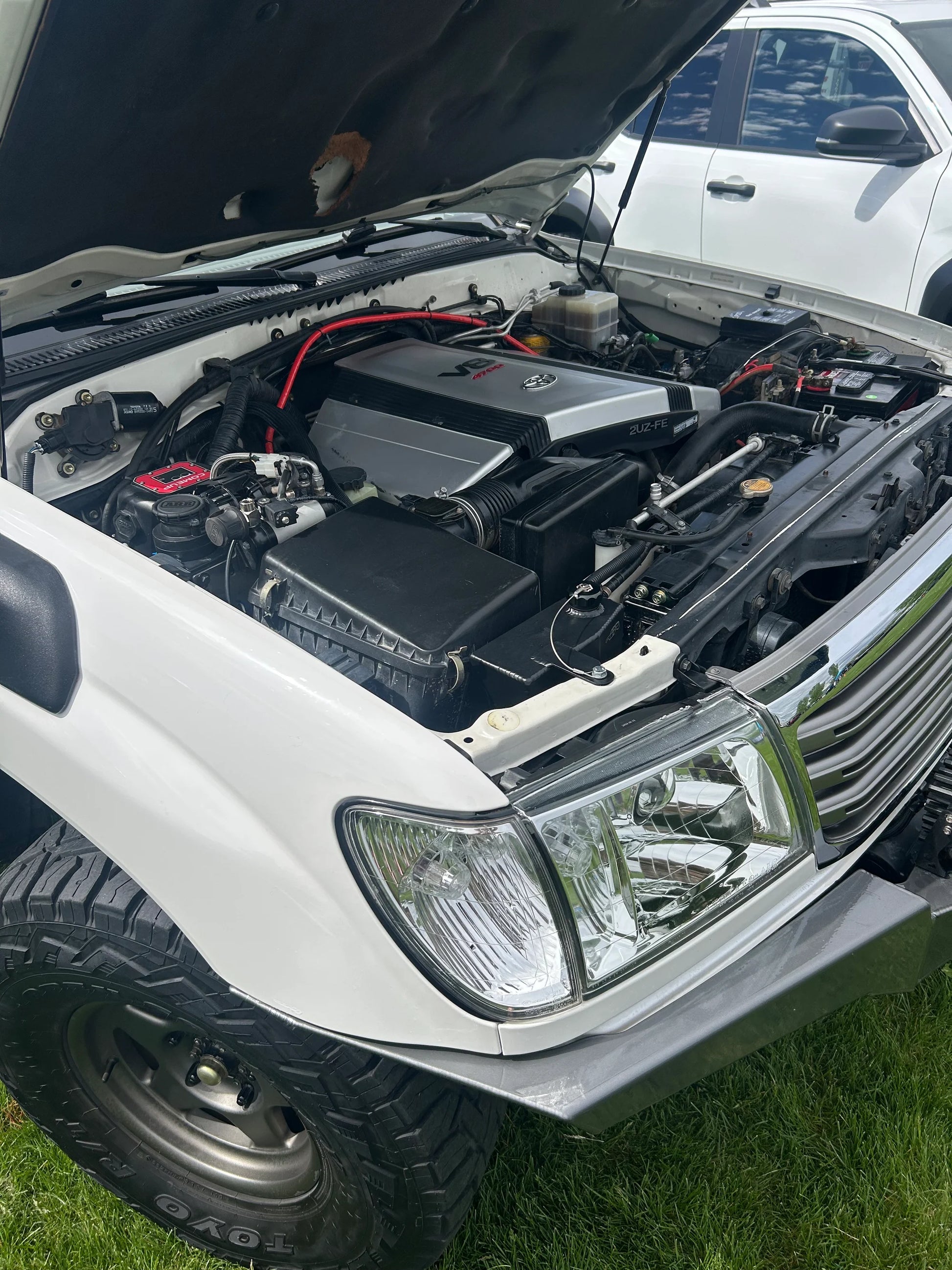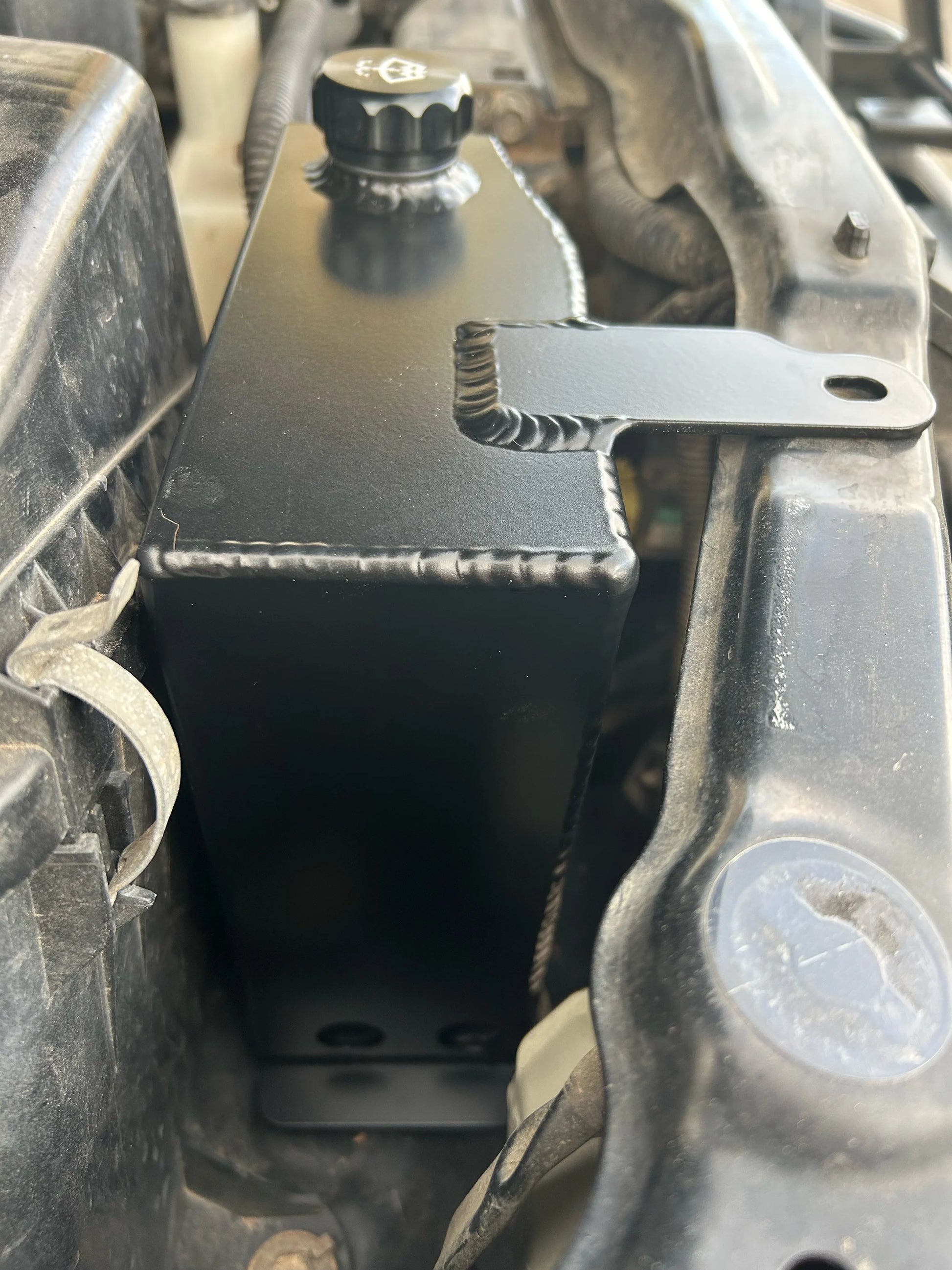 This kit allows users to relocate the wiper fluid tank on their 100 Series into the engine bay, freeing up space in the wheel well.