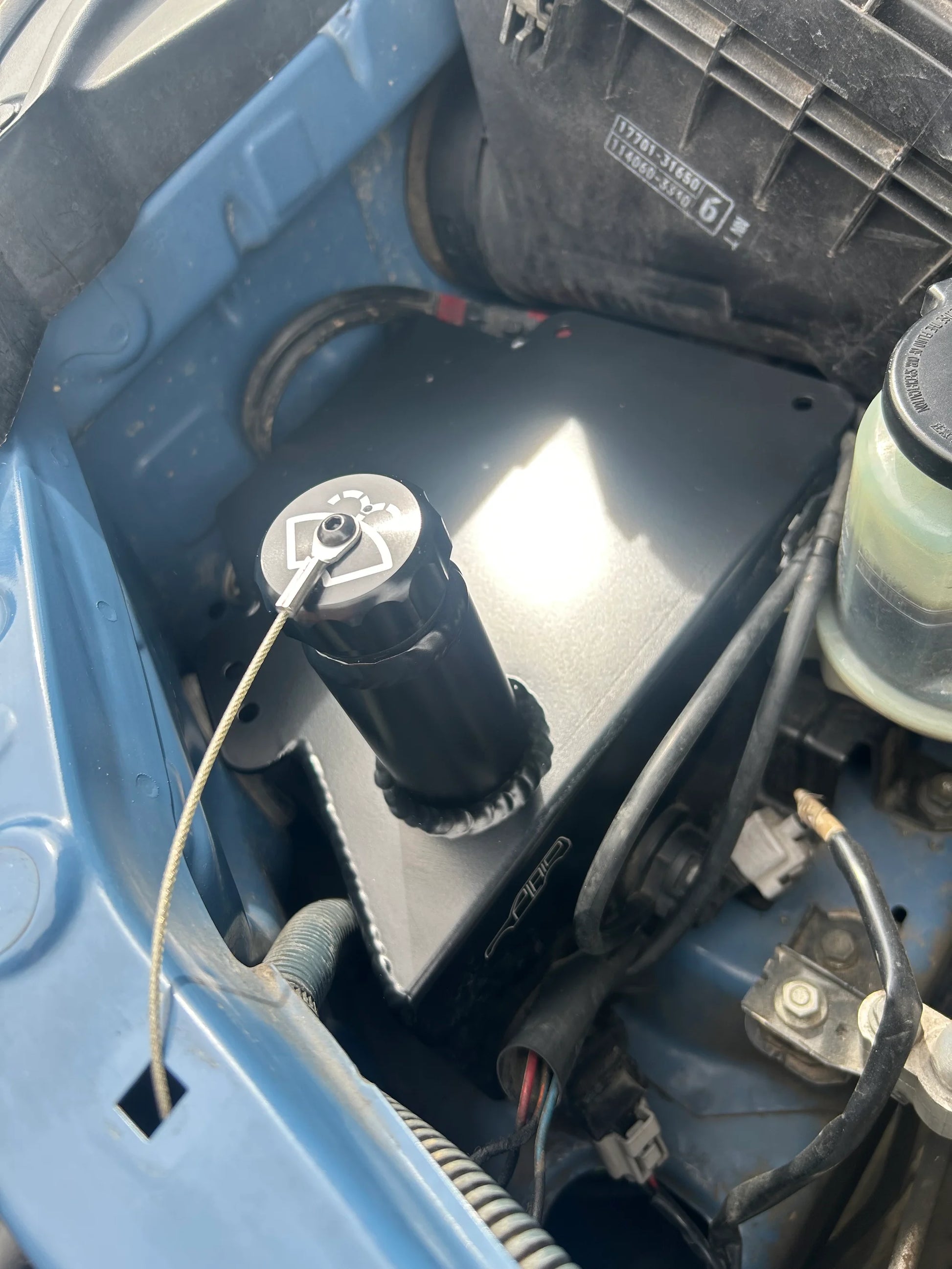Looking to add a high clearance front bumper or larger tires to your 5th gen. 4Runner? An obvious problem you'll quickly see is the low hanging plastic factory washer fluid tank by the passenger front tire.